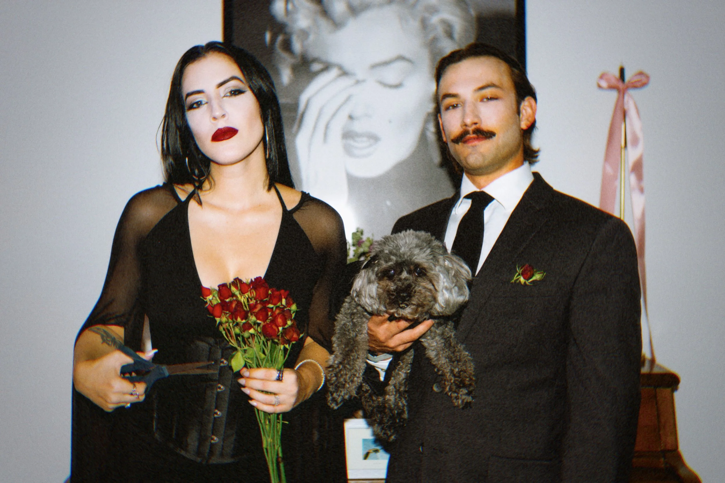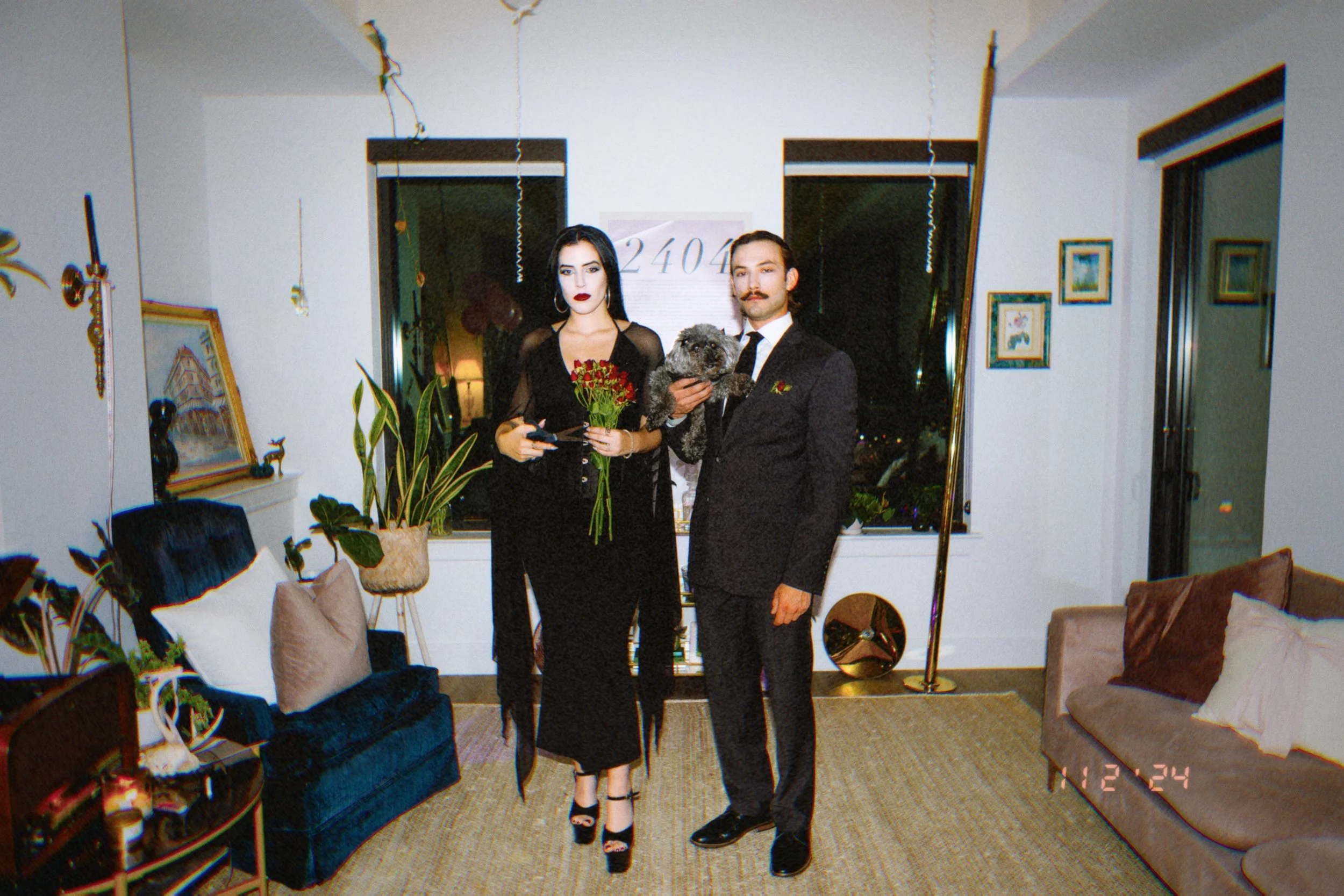 WHAT AN HONOR IT WAS TO SHARE MY NEW SINGLE RELEASE PARTY WITH MANY OF MY CLOSEST PEOPLE. A HALLOWEEN COSTUME PARTY, I USED THE APP “PARTIFUL” TO INVITE ALL MY FRIENDS TO THIS GHOULISH GATHERING AT MY HIGHRISE IN MIDTOWN ATLANTA! MY BOYFRIEND SAM AND I DRESSED AS MORTICIA AND GOMEZ FROM THE ADDAMS FAMILY, AND MY RESCUE PUP ELLIE WAS OUR WEDNESDAY.