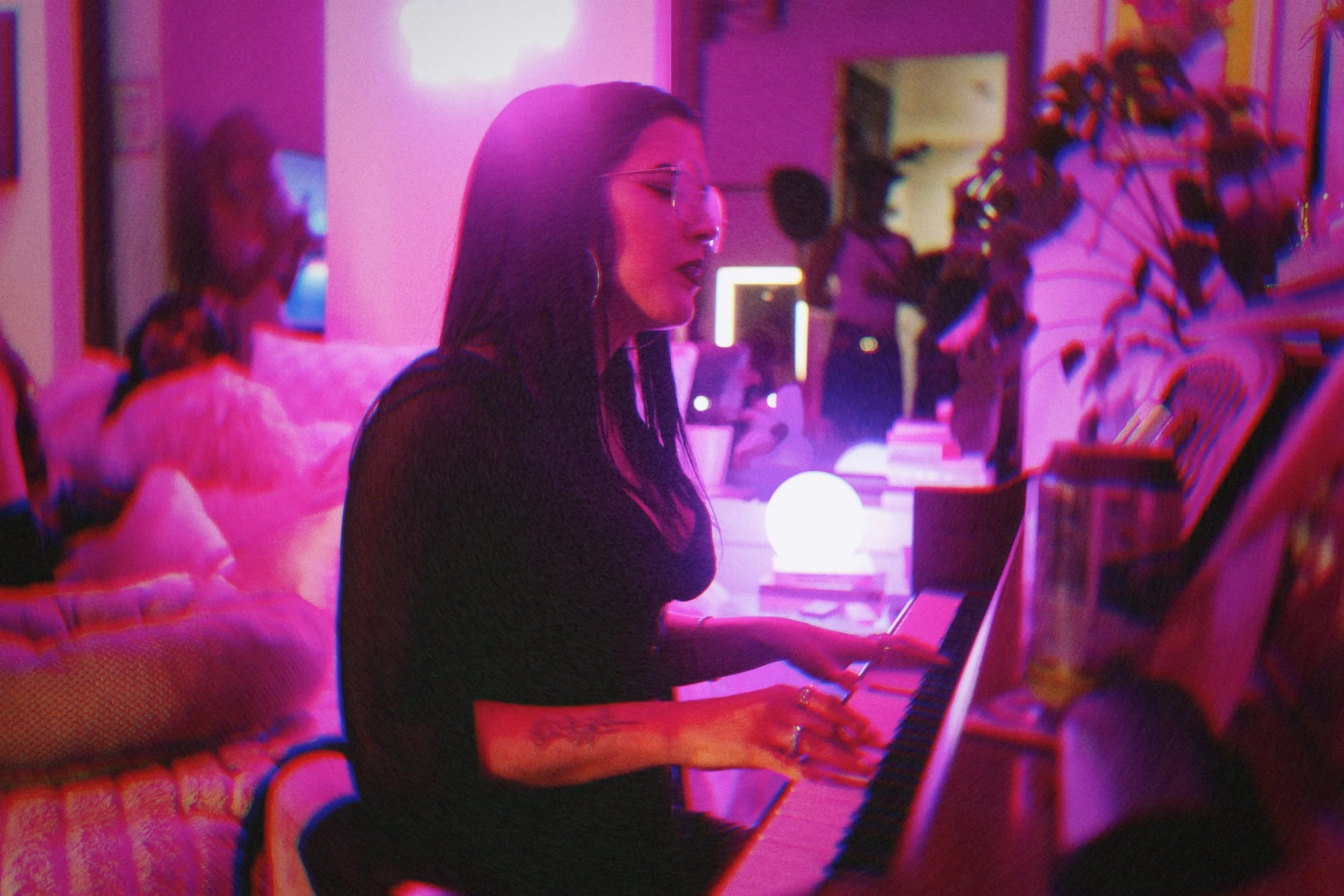 I FELT TRULY LOVED THAT EVENING, AND AS AN ARTIST, I JUST HAD TO SHARE MY MUSIC WITH MY PEOPLE. SO, I SAT DOWN AT THE PIANO IN MY ROOM AND PLAY “A GIRL IS A HAUNTED HOUSE” AS WELL AS TWO UNRELEASED TITLES. THERE WERE A FEW TEARS SHED IN THE ROOM, INCLUDING MY OWN. THIS IS THE VERY REASON I CREATE MY ART: TO MAKE PEOPLE FEEL. I DEDICATED MY IMPROMPTU PERFORMANCE TO THOSE I LOVE AND TO “HEALING TRAUMA COLLECTIVELY”. IT’S POWERFUL WHEN WE ALLOW OURSELVES TO BE VULNERABLE.